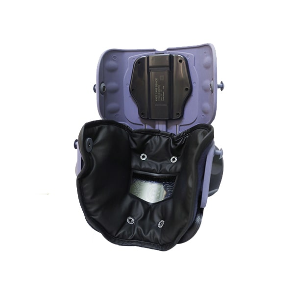 - Đặt nệm thoải mái bên trong thiết bị. Bạn đeo máy massage lên đầu gối và chú ý để bảng điều khiển hướng lên phía trên.