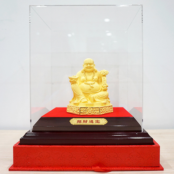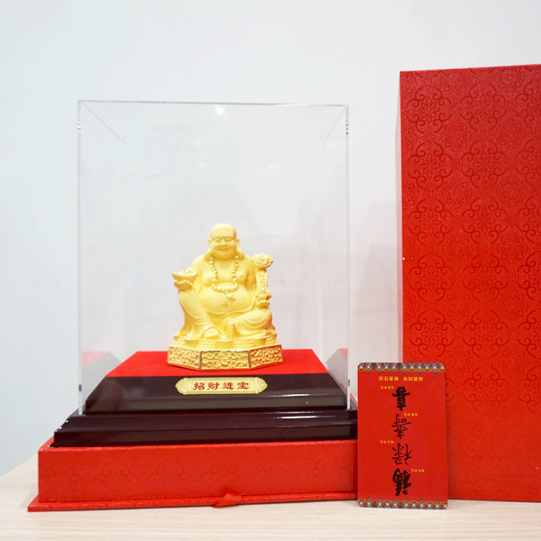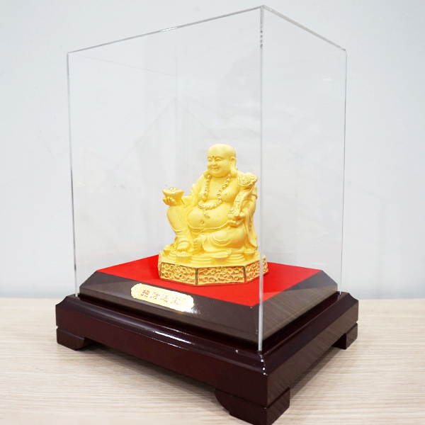 Trong phong thủy, Phật Di Lặc là một trong những biểu tượng tối cao nhất của niềm vui và hạnh phúc. Tượng Phật Di Lặc được điêu khắc tinh xảo đến từng đường nét, thể hiện rõ khuôn mặt tươi cười phúc hậu, hai tay cầm vật phẩm may mắn và ngồi trên bục tiền vàng. Chắc chắn bất kỳ ai khi nhìn vào đều sẽ nhận được những năng lượng tích cực và vui vẻ tràn đầy.