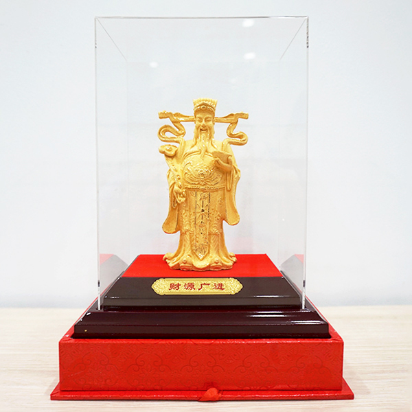 Tượng Thần Tài vàng Wickman H-963 khoác trên mình màu vàng nổi bật, toát lên vẻ dư dả và có khả năng thu hút sự giàu đến với người sở hữu. Tượng được điêu khắc tinh xảo, đặt trên bục gỗ và bên ngoài là mặt kính sang trọng. Vì thế bạn có thể trưng bày tượng Thần Tài vàng một cách trang trọng ở phòng khách, nơi làm việc và dùng làm quà Tết rất ý nghĩa.